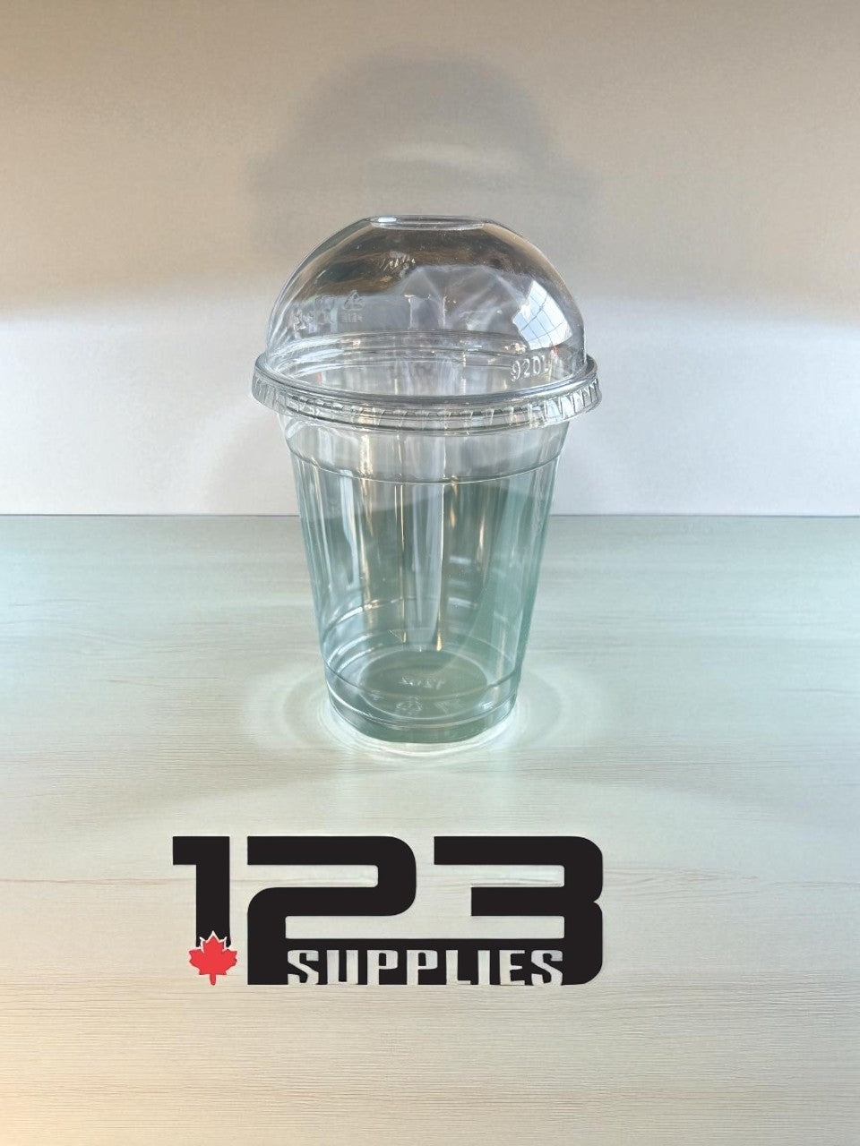 Clear dome lids made for 12oz PET cups. Durable, leak-resistant, and perfect for smoothies, and iced drinks or more.